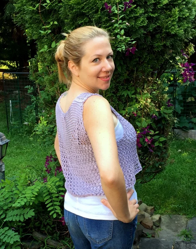I knit my Beach House in Cascade Ultra Pima, in Purple Ice, which I randomly stumbled across in my stash. I bought it years ago thinking I was going to design a beach coverup with it and ... clearly that didn't happen. It's 100% pima cotton, delightfully soft, and it took less than 2 skeins for this project.