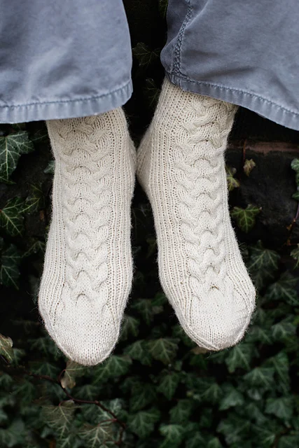 I also have my eye on the Faultlessly Neat slippers, which are a popular pattern from the book. Knit in sport weight, they'll be a bit thicker and warmer than socks, perfect for wearing around the house.