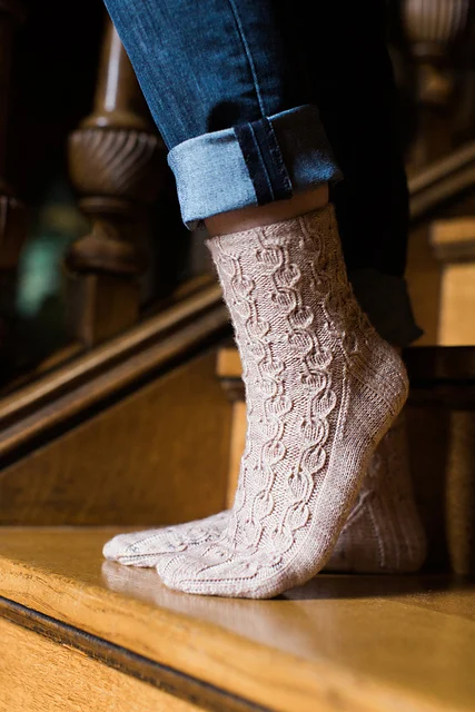 Since the book takes its inspiration from etiquette guides, you might guess correctly that most of the pieces are rather feminine, but there are several pair of socks that could easily work for men or women. I'm already planning a pair of General Country Sports socks for my husband--they're even done in sport weight ! (If you follow me on Instagram, you know I've sworn off fingering weight socks for my husband and his giant feet.)