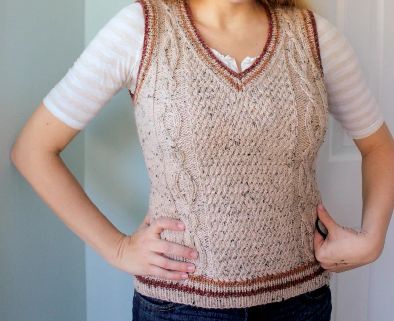 I'm so excited to finally be showing off my version of the Vaughan Vest, which was published last year as part of Knit Picks Twist and Tweed Collection.