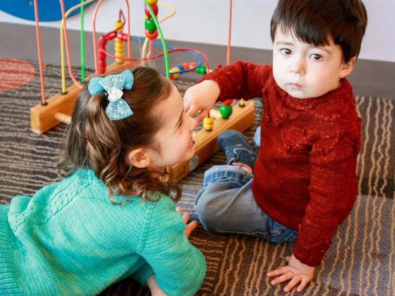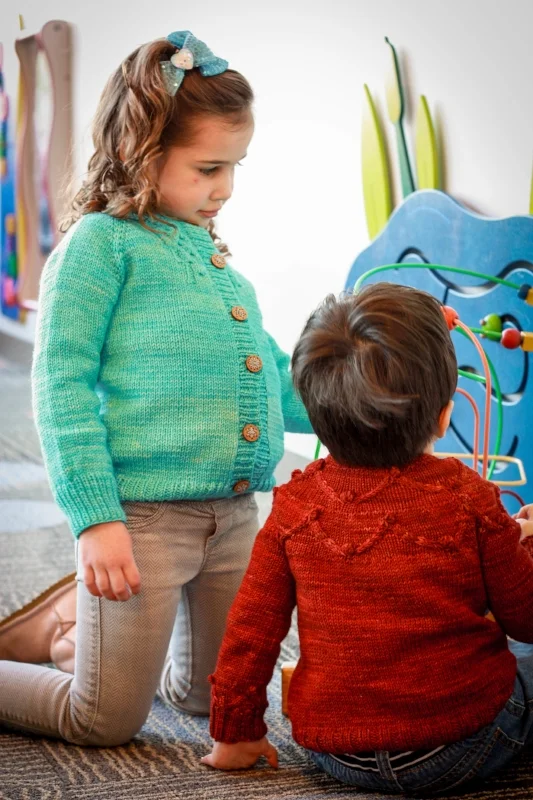 I actually hadn’t been to this library before, as it just reopened last year, and JJ doesn’t really understand the concept of borrowing books and then giving them back. So I wasn’t sure what to expect. But not only did it have a roomy—and practically empty—play space for kids with lots of toys to keep them occupied, the space was also surrounded by huge windows. Lots of natural light flooded in, and stacks of books and toys provided the perfect background for these kid-friendly knits.