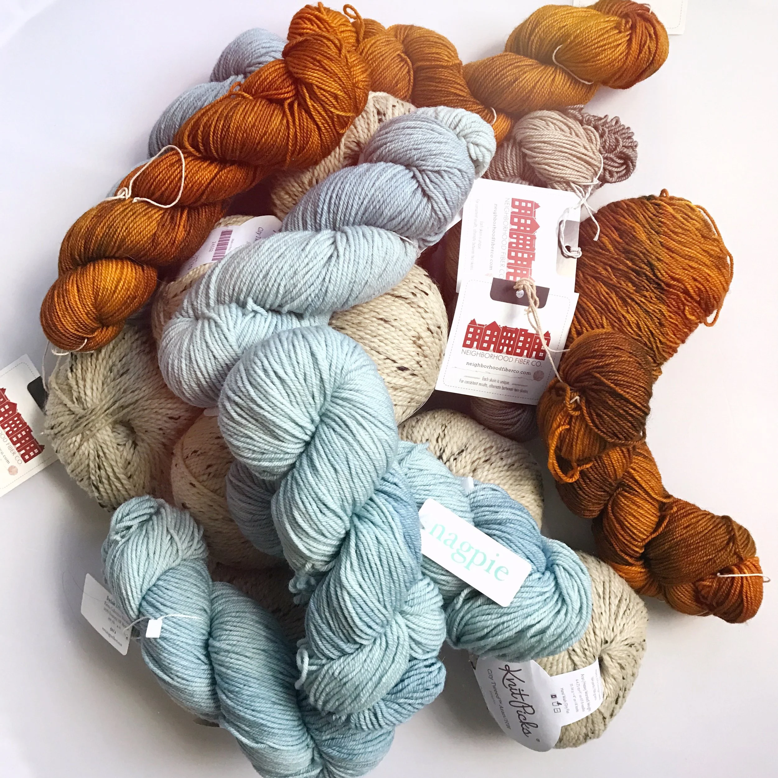 First, I don’t always request support—I have plenty (ahem) of yarn in my stash, and often, shopping the stash yields exactly what I need, so that’s my first step. I’m more likely to request support now when working on a big project, like Charm City Knits or Charm City Kids.
