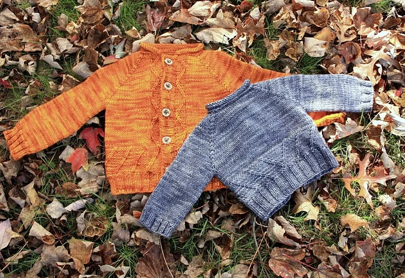 I used two different yarns for my samples, and was pleased with both. Verdant Gryphon Traveller comes in a beautiful array of colors, and 2 skeins are enough for any size. Wandering Wool Heights DK is delightfully squishy, and just 1 skein is enough for the newborn size (0-3).