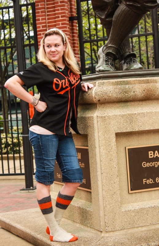 Where was I? Oh yes. I am an Orioles fan, and I couldn't make a Baltimore-inspired collection without showing some love for my team. Eutaw Street is where you'll find the main gate to Camden Yards, and it was only fitting to take the photos there as well.