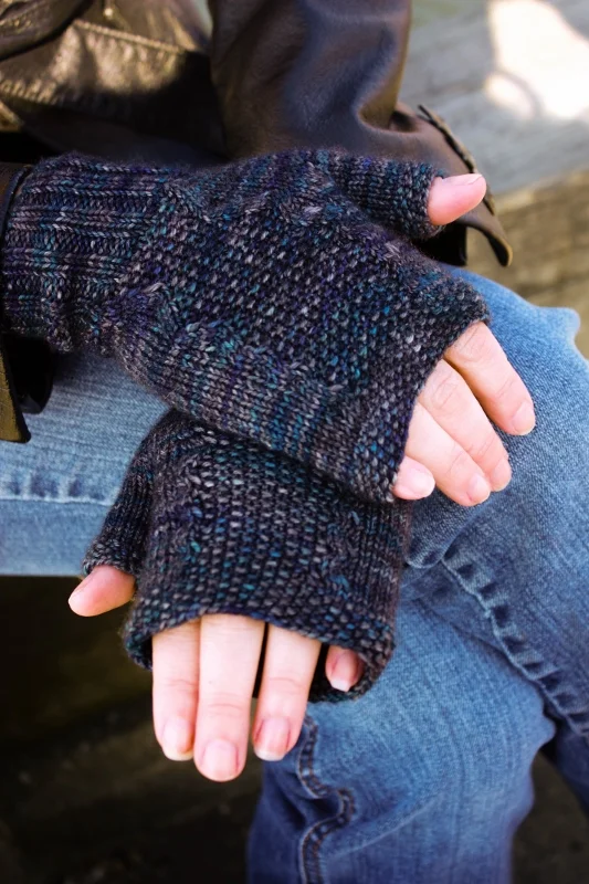 These mitts feature cables that wind subtly back and forth, framing a river of seed stitch that seamlessly flows into the top edge. The pattern includes 3 sizes: 7, 7 ½ and 8” hand circumference, with a customizable length. If you’re looking for an opportunity to practice cabling without a cable need, this is a great project—3 stitch cables are a great size to learn to juggle stitches. The cable pattern is charted, while the rest of the mitt is worked in an unfussy stockinette stitch.