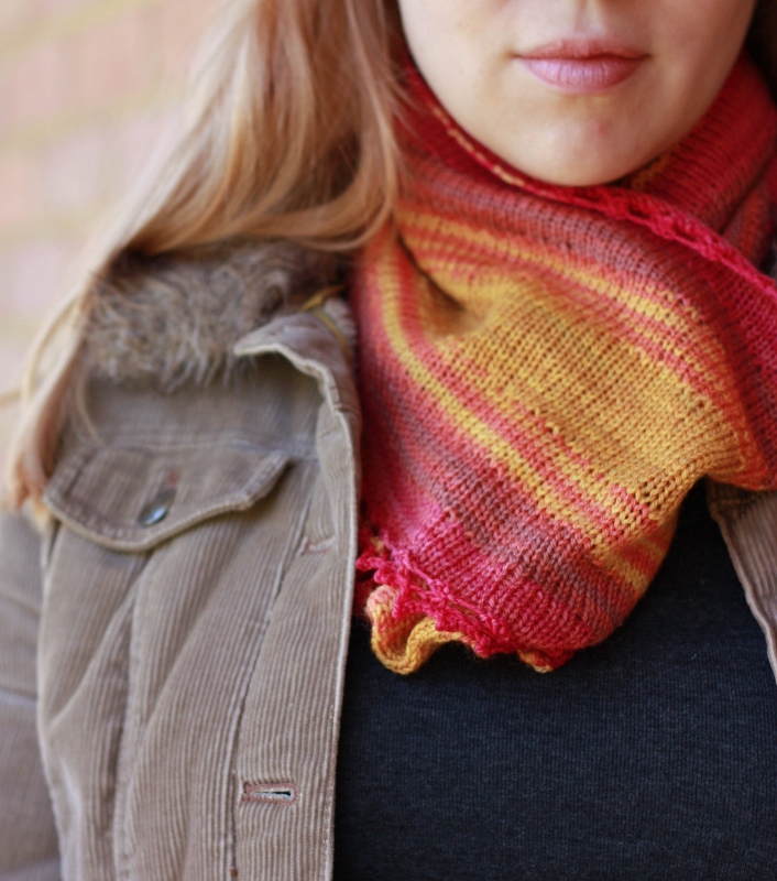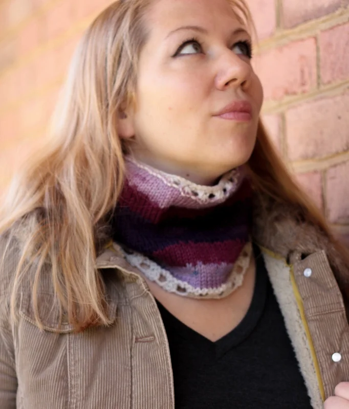 The cowl is the perfect project for scrap yarn! You need just 30 yards of each color, and it's easily finished in a couple of hours.