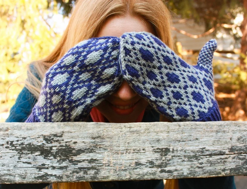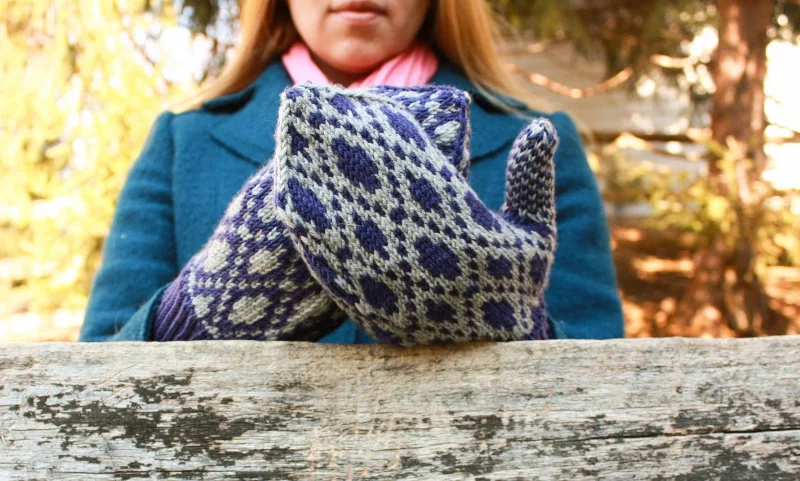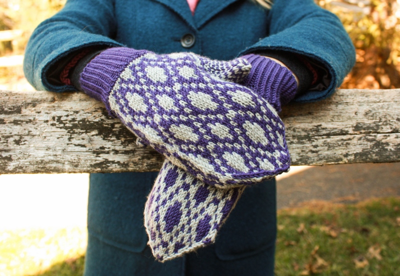 These mittens use the same stranded colorwork diamond pattern, but are knit in sport weight yarn. The heavier yarn creates a thick, warm outer layer (we still have at least 3 more weeks of winter, afterall! And things are just starting to get chilly in the southern hemisphere!) and knits up quickly. The thumbs are worked in a simple alternating pattern, creating a checkerboard look.