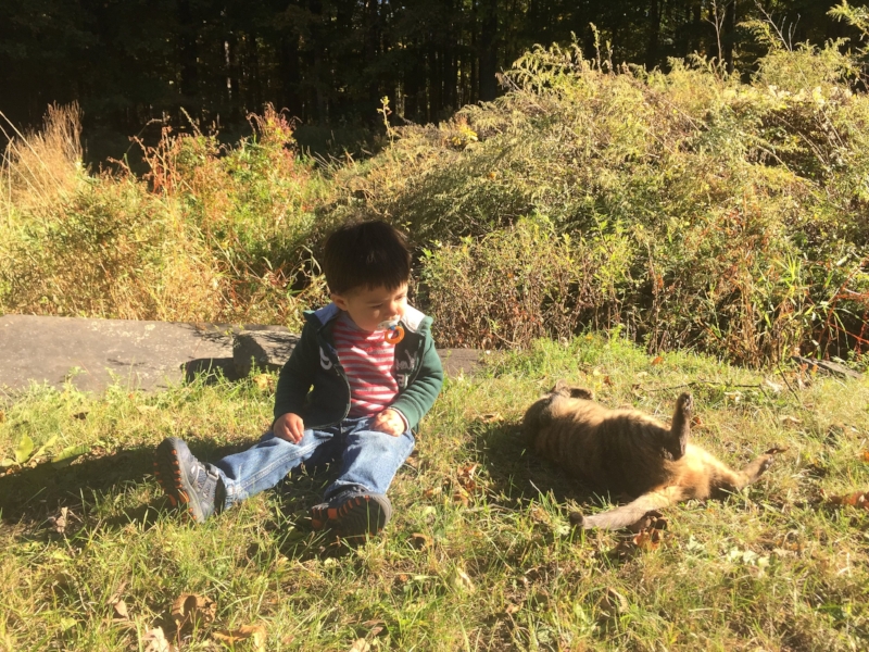 We arrived Friday afternoon and stayed in a cabin on a farm that we found through AirBnB. There were some animals on the grounds--including farm cats!